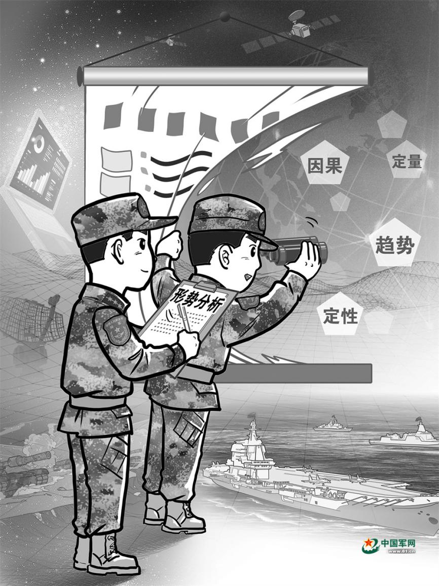 “认准形势”是一个了解事实全貌、收集事实材料,倾听兵言兵语、掌握兵情兵意的过程,而“解析形势”则是分析论证、决断判定,认真思考、出谋划策的过程。这就要求我们把零散的认识系统化,把感性的认识理性化,从现象中透视本质、从细节中发现端倪、从规律中探寻趋势,既要搞好定量分析,弄清是严重问题还是一般问题,又要搞好定性分析,弄清是个别情况还是倾向性问题。同时,也须紧扣“能打仗、打胜仗”,用好战斗力这把尺子,量好测准形势分析的“打赢贡献率”,确保分析成果真正为胜战添砖加瓦。