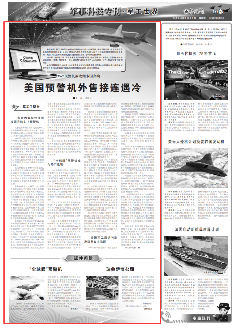 这种成本失控与进度滞后,不仅造成美空军E-7预警机项目出现交付延迟和预算超支,也让其他盟友望而却步,项目在经济层面失去可行性。