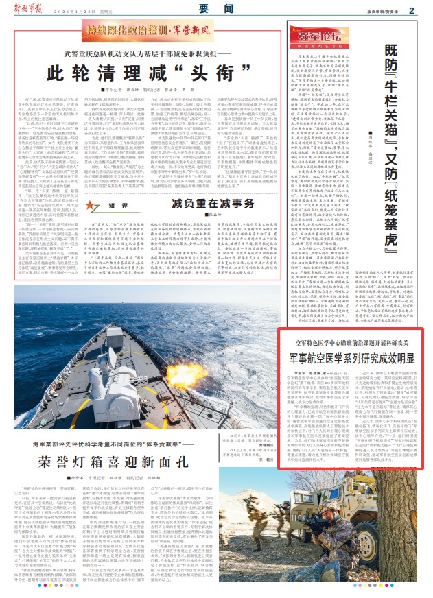 军事航空医学系列研究成效明显