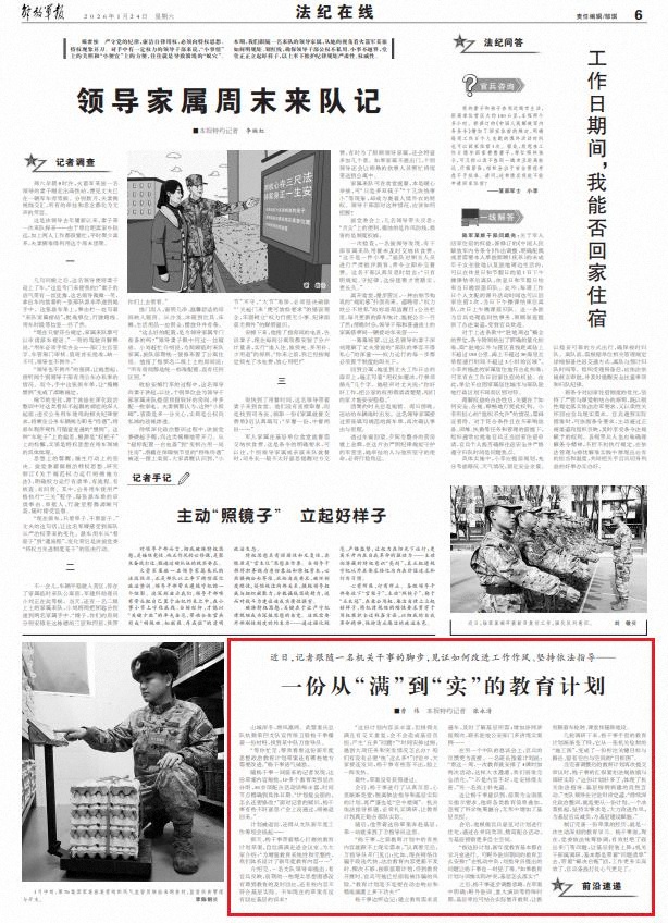 当完善调整后的教育计划再次提交审议时,杨干事的汇报紧扣法规依据与调研实际。“这份计划好多了,体现了机关依法指导、基层按纲抓建的良性互动。”支队领导在讨论时肯定道,“持续深化政治整训,就是要从一份计划、一个决策抓起,坚持实事求是,大力改进作风,为基层官兵减负,为基层建设赋能。”