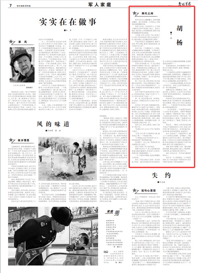 而后的十多年光阴,我渐渐意识到,解放军并不只是那个见不到的人。那些电视上常常出现在灾情一线或边防哨所的身影,总让我心中涌起一股强烈的感情。有时,我会想起我的父亲,那个与胡杨一同扎根边陲的老兵,想起他晒得黝黑的脸和掌心厚厚的老茧。或许,他的心中装着和胡杨一样的倔强与执着。我开始想成为他们中的一员。