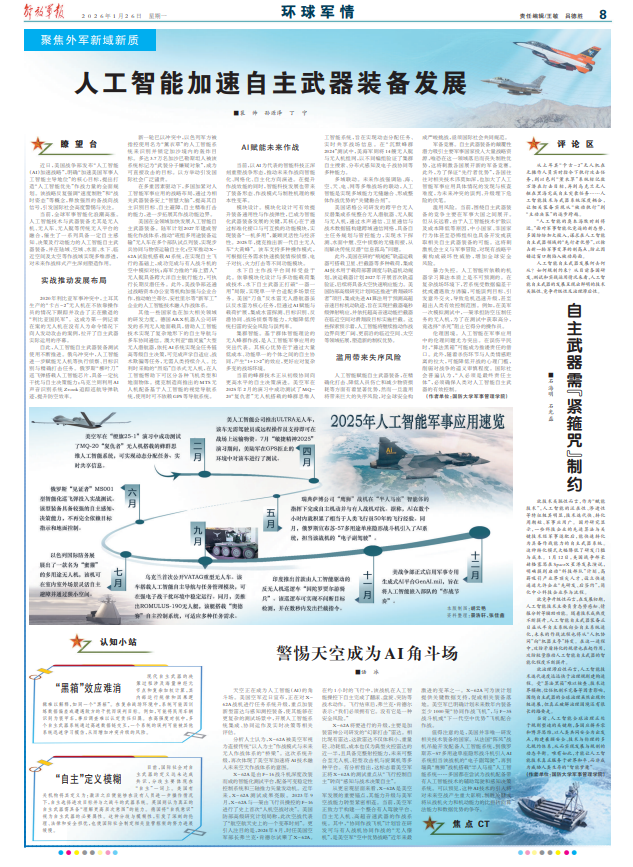 当前,以AI为代表的智能科技正深刻重塑战争形态,推动未来作战向智能化、网络化、自主化方向演进。在提升作战效能的同时,智能科技发展也带来了装备形态、作战模式与制胜机理的根本性变革。