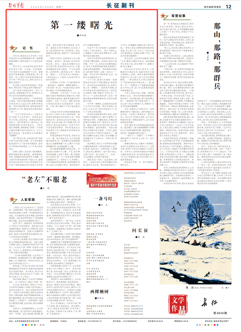 多年来,那些发生在开年第一天的军旅往事,总会伴随着新年第一缕斑斓璀璨的曙光,带给我豪气干云的回忆和激励。
