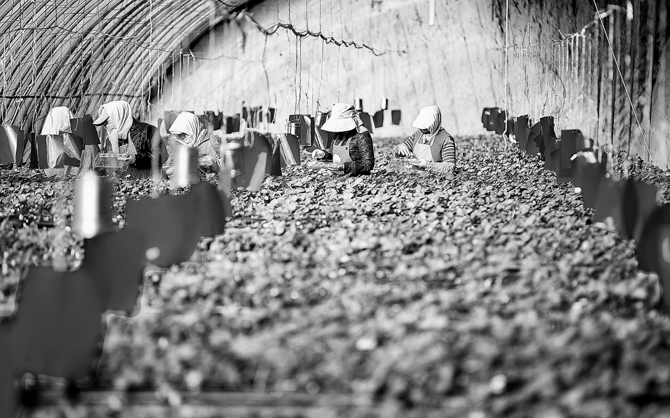 1月15日,农民在位于宁夏贺兰县习岗镇的新平村设施园区草莓温棚内采摘草莓。近年来,习岗镇立足土地资源优势,推进设施园区建设,带动3000多名农民增收致富,助力乡村振兴。新华社记者 杨植森摄