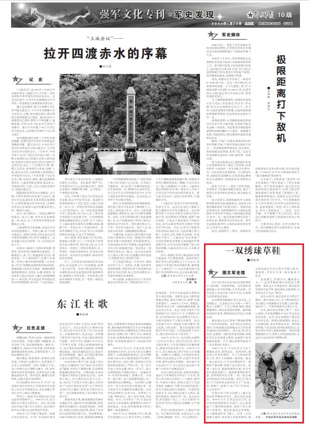 这双绣球草鞋随红军万里长征,又回到起点。它是那么与众不同——两个鞋尖上各绑了一个红心绣球,鞋底、鞋面精编细织,用料是柔韧的黄麻。编草鞋的姑娘叫春秀,绑绣球的红军战士叫谢志坚。