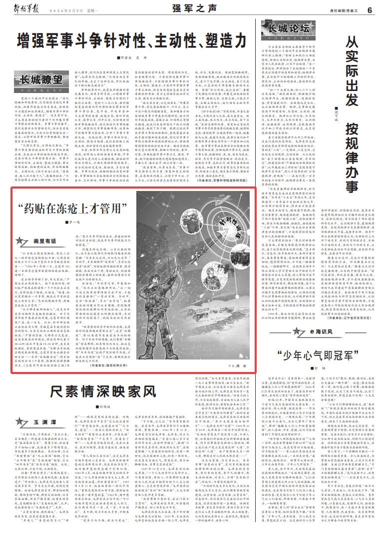 这名领导停顿了会,对大家说:“严寒也是凶残的敌人。接下来的训练,咱们把严寒造成的困难一个个列出来去消灭,这样就能少牺牲,打胜仗。”接着,他从兜里掏出一片膏药,贴在左手背的冻疮上告诉大家:“冬训就像贴膏药,药贴在冻疮上才管用。”