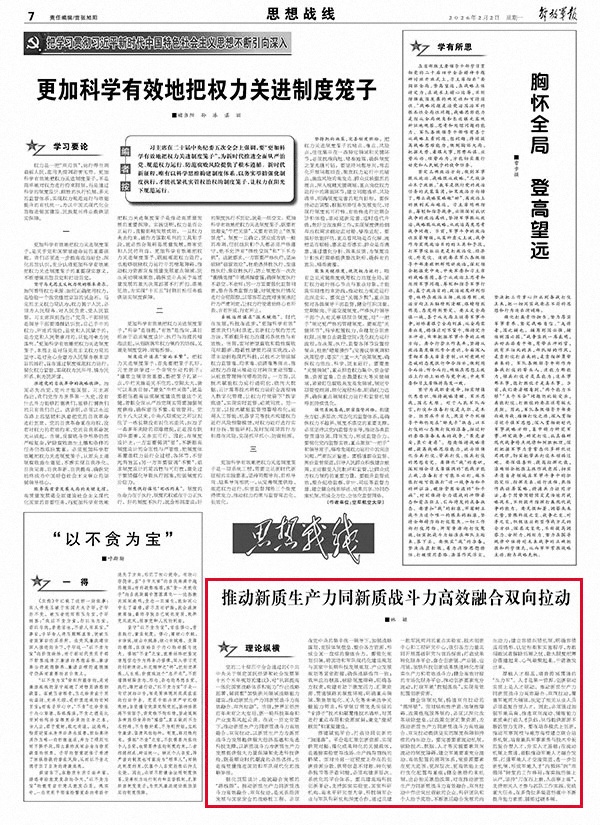 推动新质生产力同新质战斗力高效融合双向拉动