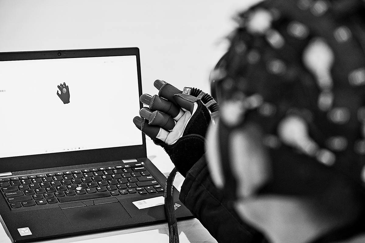 工程师演示脑机接口手部运动反馈康复训练系统。新华社发