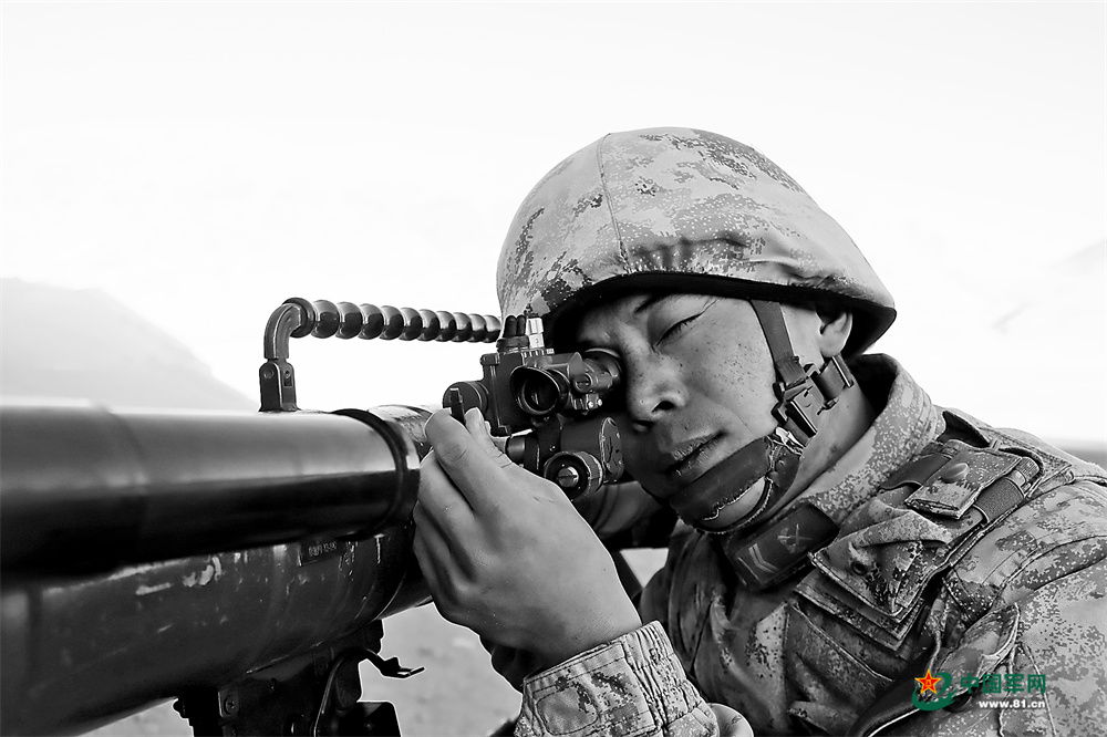 陈丽斌进行反坦克火箭弹瞄准训练。朱星隆摄