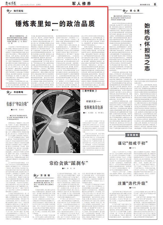 锤炼表里如一的政治品质