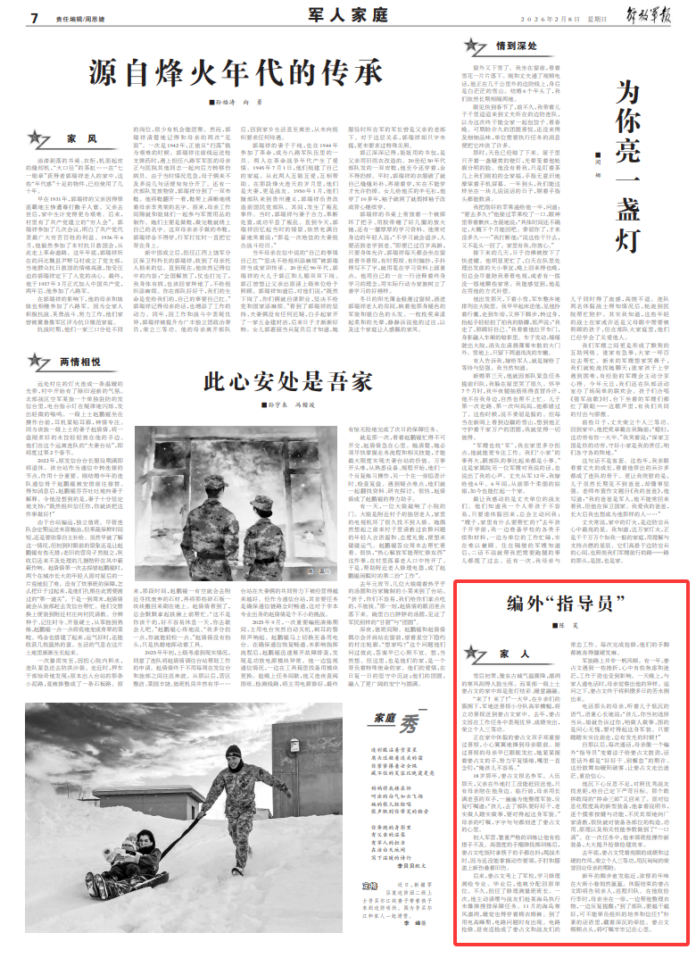 雪后初霁,豫东古城气温骤降,凛冽的寒风刮得人脸生疼。而某部一级上士姜占文的家中却是张灯结彩、暖意融融。