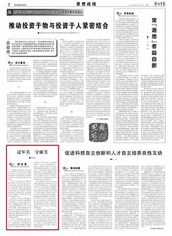 绝大多数党员干部之所以能守住廉关,根本在于党性坚强、品行端正,思想防线筑得牢固。反观那些落马官员,无不是信仰缺失、党性薄弱之人。党员干部必须坚持不懈用党的创新理论凝心铸魂,勤掸“思想尘”、多思“贪欲害”、常破“心中贼”,从党和军队的优良传统中汲取滋养,坚持慎独慎初慎微慎友,防治思想上的“病变”,不给不正之风以可乘之机。唯有让廉洁意识、规矩意识在头脑中深深扎根,让过年关、守廉关成为思想自觉和行为自觉,才能赢得灵魂深处“公与私”“情与法”“贪与廉”交战的胜利。