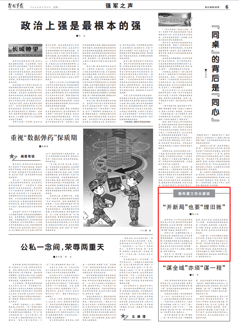 “旧账”是一个单位问题和矛盾的集中体现,是需要下功夫啃的“硬骨头”。换言之,“理旧账”就是抓住了主要矛盾,“清旧账”就是找准了努力方向。各级领导干部须坚定“常常做,不怕千万事”的信念,戒急功近利之意、去冒进浮躁之气,做好“理旧账”工作,方能敲钟问响、抓出成效,推动事业进步、赢得官兵认可。