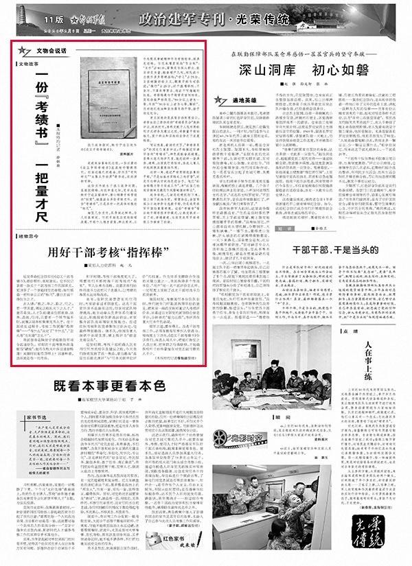 战争年代,几场恶仗硬仗打下来,谁上谁下战功为凭。即便如此,全面客观公正地评价与选拔干部,仍是我党我军早期的重要考题。这份“考绩书”背后的干部考核评价模式,让孰优孰劣一目了然、清清楚楚,为我党我军干部考核工作探索了经验。