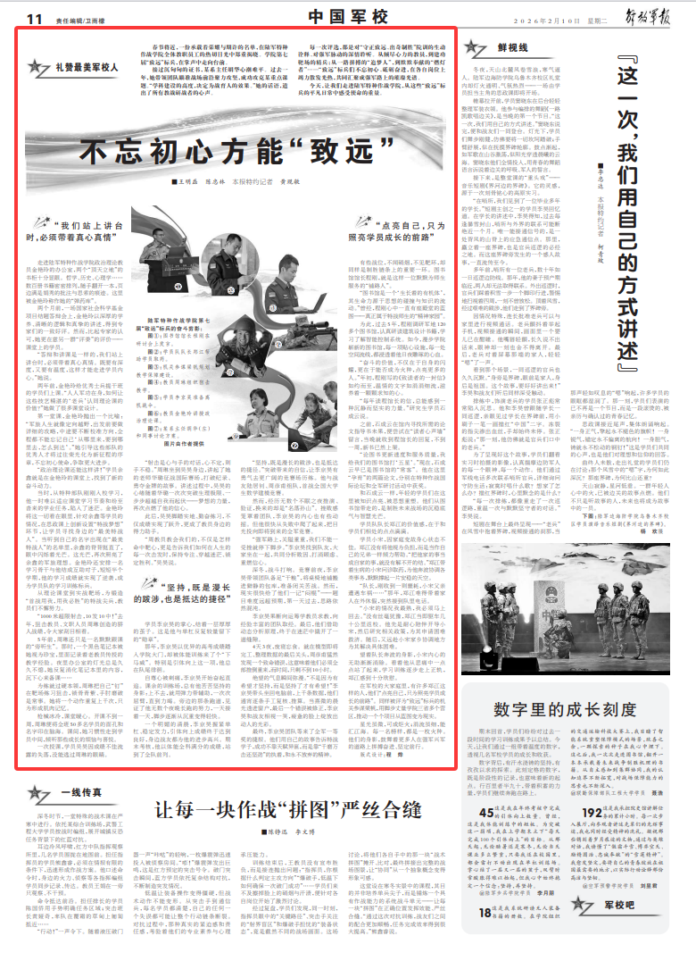 接过沉甸甸的证书,某系主任胡华心潮难平。过去一年,她带领团队瞄准战场前沿聚力攻坚,成功攻克某重点课题。“学科建设的高度,决定为战育人的效果。”她的话语,道出了所有教战研战者的心声。
