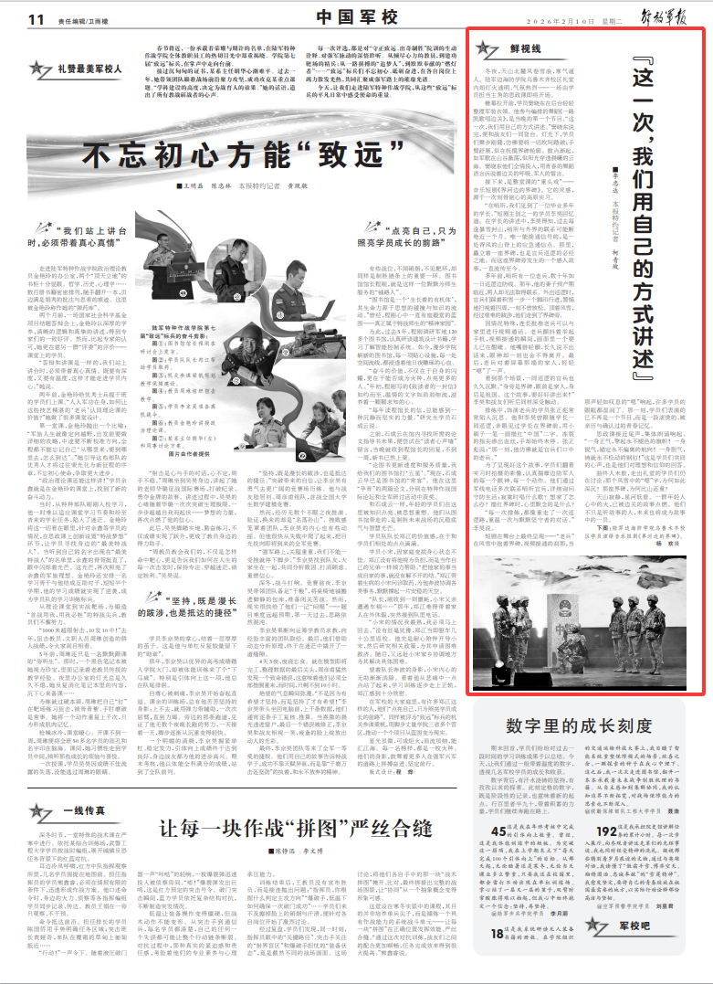 冬夜,天山北麓风卷雪浪,寒气逼人。陆军边海防学院乌鲁木齐校区礼堂内却灯火通明、气氛热烈——一场由学员担当主角的思政课即将开场。