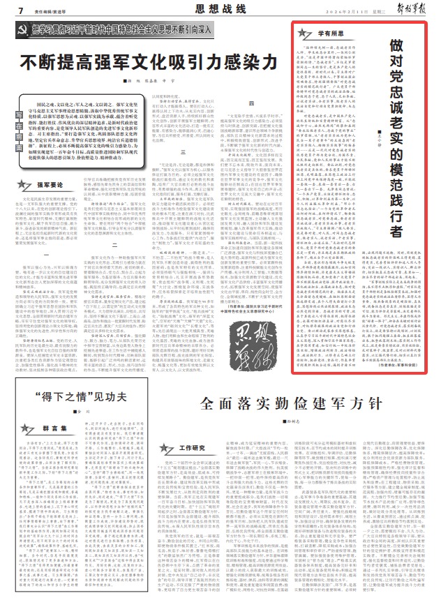 “军事训练实际上是未来战争的预演,来不得半点飘浮和虚假。”对军队党员干部特别是各级指挥员来说,加强对党忠诚老实的政治品质修养,显得尤为重要。练兵备战靠的是硬指标、真本领,战备状态是否真实、训练数据是否可信、能力评估是否客观,决定着部队战斗力质效。形式主义、弄虚作假或许能“好看一阵子”,却会在关键时刻付出沉重代价。对党忠诚老实,落实到备战打仗上,就是要坚持以战领训、以训促战,敢于把问题摆上桌面,把差距暴露出来,把整改落到末端;落实到工作作风上,就是要靠实绩说话、用实效检验,反对装样子、做盆景,反对以材料代替落实、以汇报代替行动,切实以真打实备不断提高部队打赢能力。