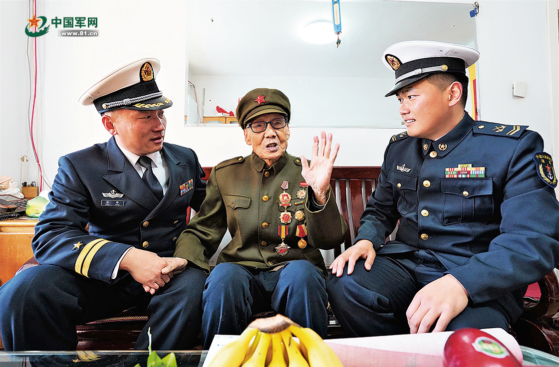 铭记功勋 致敬英雄丨海军某部官兵探望老兵田云秀