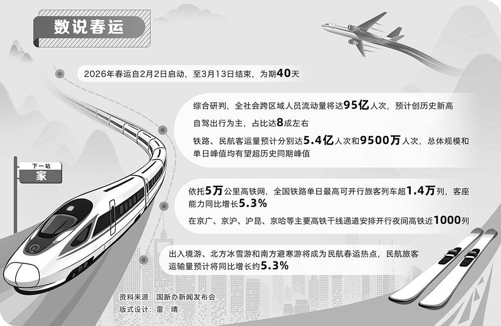 2月2日,2026年春运拉开帷幕。“40天”“95亿人次”……一段关于旅程与团圆的中国故事,如期而至。