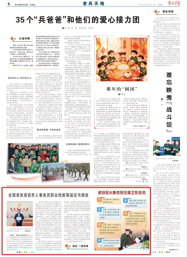 解放军报讯 谢家怀、戴伟国报道:2月4日,在福建泉州石狮市退役军人服务中心工作的林佑雄,从泉州市退役军人事务局工作人员手中,接过编号后四位为“0001”的全国首张退役军人事务员职业技能等级证书,成为人力资源和社会保障部、退役军人事务部联合认证的退役军人事务员。