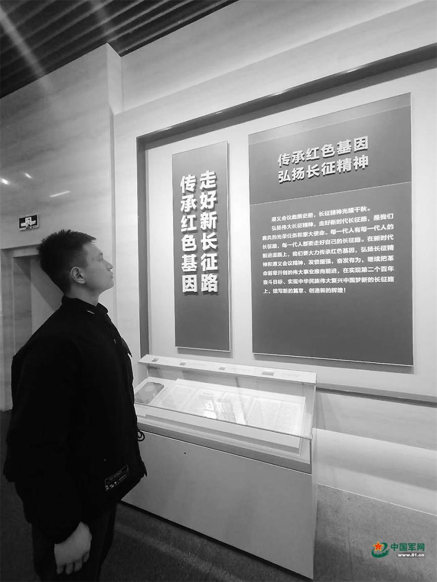 赤水河畔,涛声激荡,诉说着峥嵘岁月里革命先辈的光辉事迹。陆军工程大学学员陈滔伫立在遵义会议纪念馆古朴的门楼前,神情凝重肃穆。