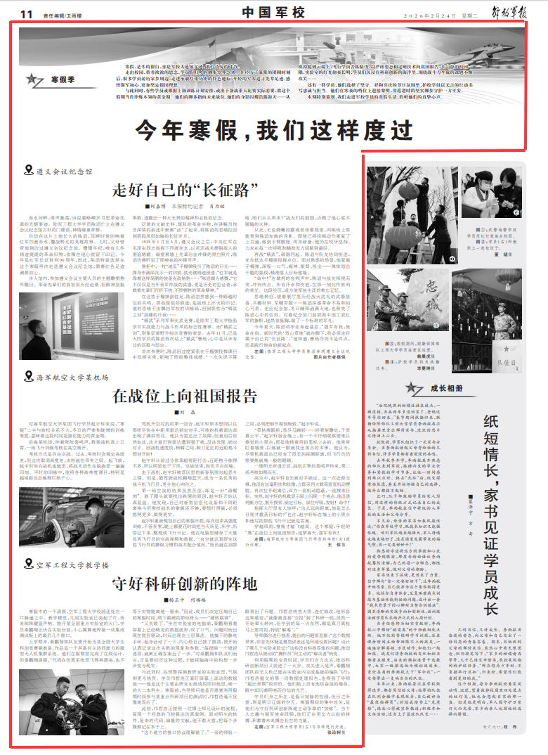 本期特别策划,我们走进军校学员的寒假生活,聆听他们的真挚心声。