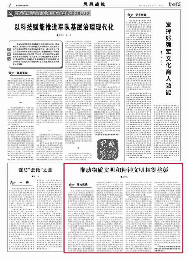 推动物质文明和精神文明相得益彰