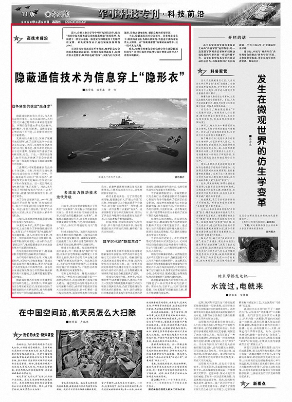 无论是民用领域还是军事领域,维护信息安全的需求都越来越迫切。特别是在现代战场上,如何在敌人监测下,既保持电磁“隐身”,又能与后方实时通联,是抢占制电磁权、制信息权的重要保证。