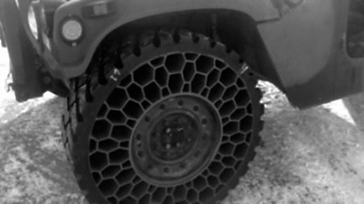 同时兼顾蜂窝仿生结构和自修复原理的新型轮胎。资料图片