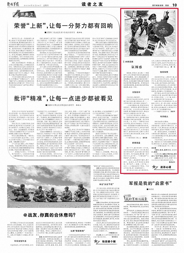 贴春联、赏花灯、逛大集……新春佳节,人们以丰富多彩的方式感受欢度春节的氛围感。如今,营造氛围感、享受氛围感,日益成为追求美好生活的一种方式,大家在捕捉“须臾之物”的意境和共鸣中获得情绪价值。军营里也不乏特有的氛围感,置身其间时会鲜明地感受到:我是一个兵。