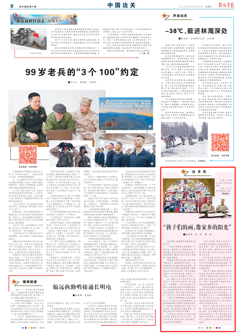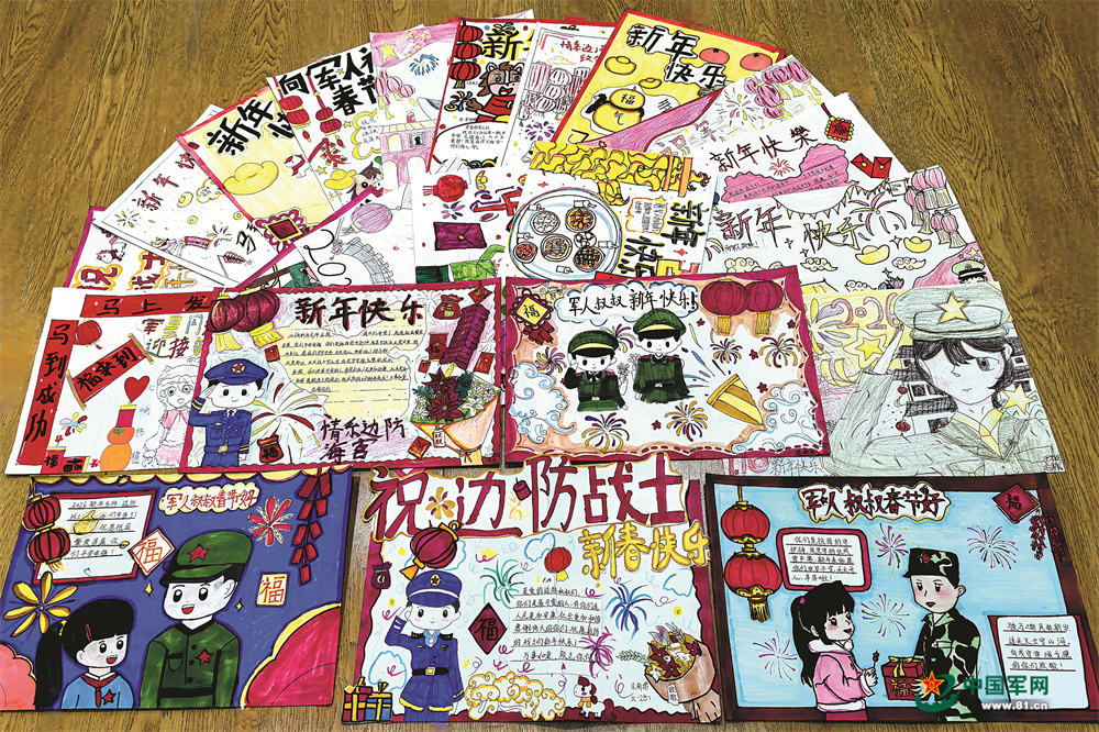蜡笔涂抹的五星红旗、线条稚拙的敬礼军人、巍峨高耸的界碑……画里满是孩子们想象中的边关模样。他们的字迹歪歪扭扭却饱蘸真情:“解放军叔叔,你们那里冷吗”“你们是超级英雄”……许多画的角落,写着同一个心愿——长大后,我也要当一名军人。