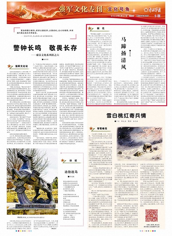 历史在留下宏大史诗的同时,也留下了这些感人的细节。从中我们可以看到,党和人民军队曾面临怎样的生死抉择,经历过怎样的艰难困苦,但一切困难和挑战,都被我们战胜了!追根溯源,是因为我们有共同的理想信念,有官兵一致、团结友爱的优良传统。马蹄扬清风。这清风,是艰苦奋斗、一往无前的作风,是坚如磐石、牢不可破的团结,是同甘共苦、不搞特殊的清廉品格。“上下同欲者胜”。在新的征程上,传承和弘扬我党我军光荣传统和优良作风,让这清风溢满军营,我们就没有过不去的“雪山”“草地”,就没有跨不过去的“大渡河”“腊子口”,从而续写新的传奇故事。