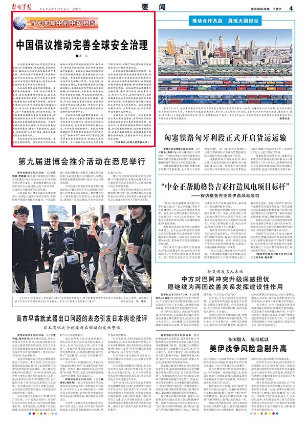 不久前发布的《2026年慕尼黑安全报告》以“正遭摧毁”为主标题,直指单边主义、霸权主义对当今国际秩序的严重破坏。面对动荡不安的世界,中国相继提出四大全球倡议,不仅丰富了人类命运共同体理念的科学内涵,更为全球安全治理体系变革注入了新动力。