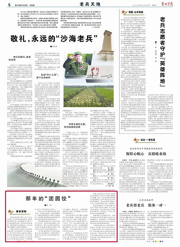 刚刚过去的这个春节,我们一家三代欢聚一堂,热热闹闹地包饺子,享受难得的团圆时光。和晚辈摆“龙门阵”时,我又说起参军后第一次在部队过年的往事。每每回想起当年和战友们一起吃的那顿“团圆饺”,总觉得有滋有味。