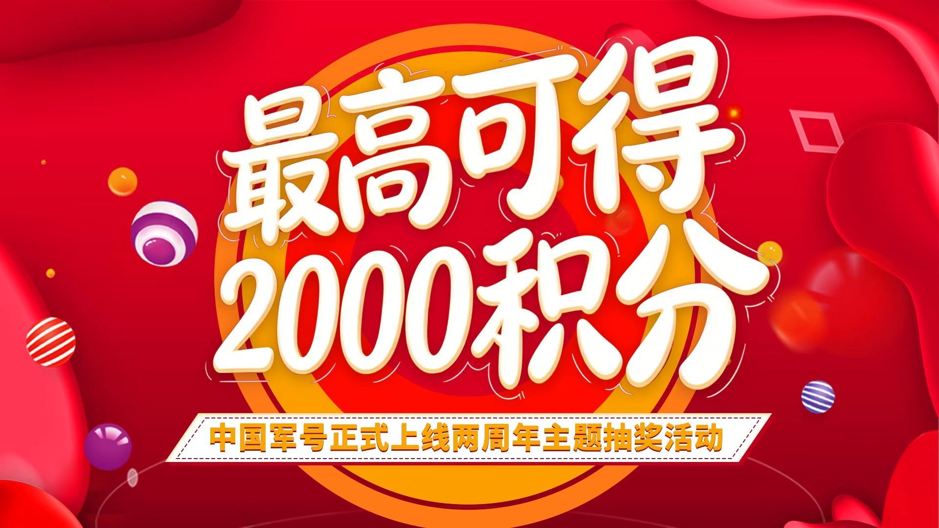积分盲盒抽奖全新上线!登录中国军号客户端,点击“服务”-“军号活动”进入活动专区,指尖轻轻一点,好运即刻触发!参与即送20积分,最高可得2000积分!快来试试你的手气吧!