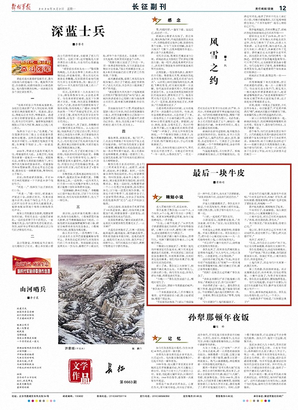 牛皮在火上烤着,嗞嗞作响,焦香弥漫。所有人都咽着口水。李队长拔出小刀,把牛皮小心地切成12块——大一点的给病号和小鬼,小块的给其他人。