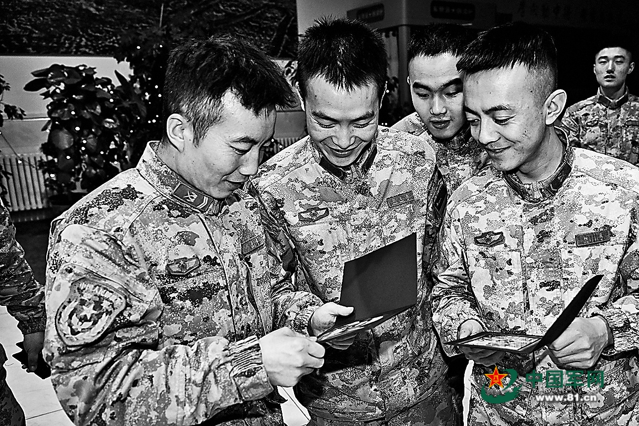 战士们围坐成圈,有人大声朗读,有人静静聆听。读到最后,没有人再说话,只有窗外的风声在呼啸。二级上士傅海波小心抚平信纸上的折痕,轻声说:“我女儿也上三年级,看到这信,就像听见她在跟我说话。”