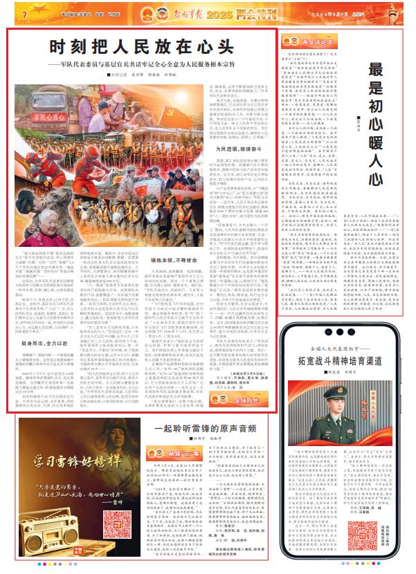 树高千尺,其根必深;江河万里,其源必长。会场外,基层官兵与军队代表委员产生深深共鸣,“‘人民’二字,对人民军队而言,是基因、是属性、是胎记,我们要牢记全心全意为人民服务的根本宗旨,始终同人民站在一起、时刻把人民放在心头,永远做人民信赖、人民拥护、人民热爱的子弟兵。”