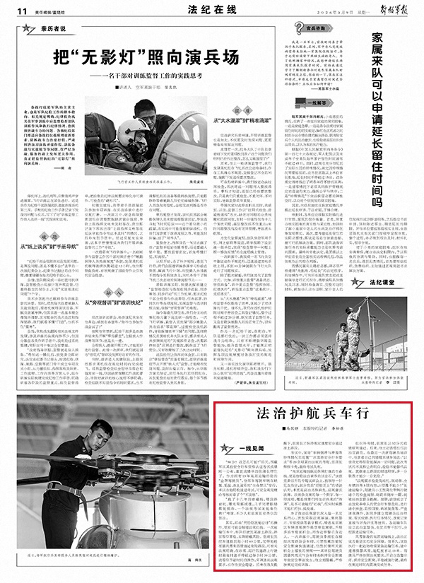 “法规要求检查发动机、制动器、全车燃油等5项内容,1项都不能少!”长途运输中,驾驶员小王想简化车辆行驶途中的检查流程,刚简单绕车一圈,就被法治监督员提醒。前期,该旅成立了由旅党委牵头的安全行车督查组,进行途中抽查、监控回放、轨迹复盘等,严查违规操作,还同步建立驾驶员法治档案,考试成绩、执行任务情况、违规记录直接与评先评优等挂钩。各运输车队设立法治监督员,由党员骨干担任,全程跟进运输任务。