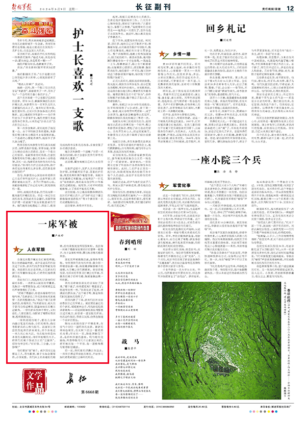 我的思绪被张班长的话语拉了回来。“都下连了,标准要更高!哪里歪了,你就常去捏一捏。”张班长站了起来,对满屋的新兵说,“这个被子呀,算是陪你们时间最长的物件了。”