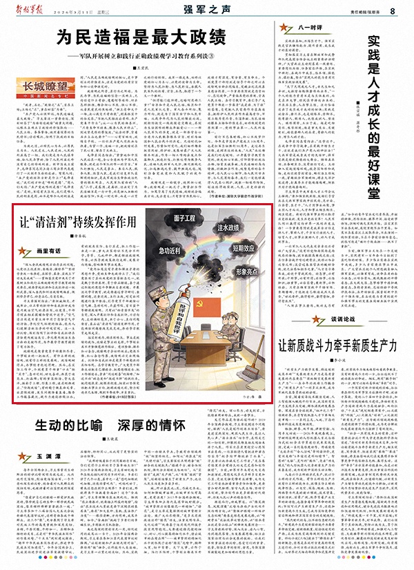 习主席深刻指出:“要坦诚相见、开诚布公,让正常的批评和自我批评成为党内政治空气的清洁剂,让党员、干部习惯在相互提醒和督促中进步。”空气清洁剂是日常生活中用于清除空气中的污物、净化空气环境的物品,能为人们提供清新洁净的呼吸空间。这一生动比喻,深刻指明了批评和自我批评在清除党内政治灰尘、净化党内政治生态方面的关键作用,为开展学习教育提供了有力抓手。