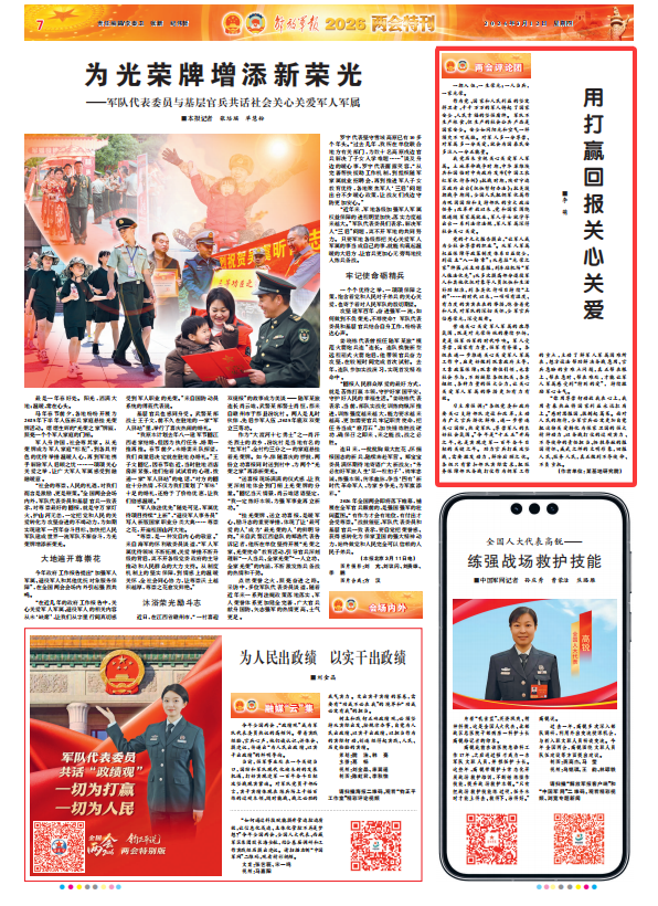 “你用尊崇行动放我在心上,我用青春热血将国家利益永远扛肩上。”感时思报国,拔剑起蒿莱。面对人民的期待,全军官兵必定更加自觉把这份关爱转化为保家卫国的强大精神动力,以备战打仗的过硬实力、不辱使命的责任担当、牺牲奉献的报国情怀、威武之师的文明形象,回报人民、服务人民,真正做到不辱使命、不负重托。
