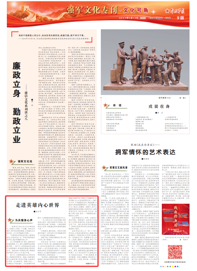 走进英雄的内心世界,才能真正演好英雄。情景剧中,虽然我只有短短几分钟的表演时间,但很多战友都记住了我。他们说我把英雄演“活”了,那种对党和革命事业热烈的情感感染到了他们。