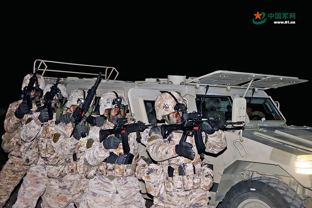 该团组织夜间人车协同训练。夏 燃摄