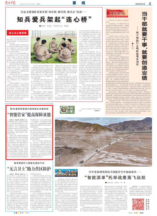 “精准、高效、快捷的装备器材保障,是提高部队遂行任务能力的重要基础。”该旅领导介绍,以往,仓库日常管理主要依靠人工,耗时费力,遇到官兵紧急请领物资时,错发、漏发等情况也有发生。该旅经过深入调研决定,引入射频识别、智能仓储管理等技术,打造出一套信息化仓储系统。如今,依托这套系统,该旅器材仓库内的每一件器材都有专属电子编码,无论器材入库还是出库,系统都能自动扫描识别、精准记录。此外,该系统还具有器材位置一键查询、存储环境实时监测、装备消耗临界预警等功能。“信息化仓储系统如同一位‘智能管家’,不仅帮助我们实时掌握仓库‘家底’,还能根据器材使用频率和消耗进度,提醒我们及时补充器材。”张猛欣喜地说。
