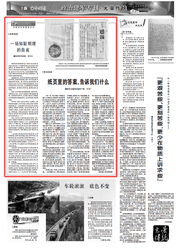 看完这份泛黄的红色档案,此前零散的感悟,终于串成了清晰的思路,我将和旅里的纪检监察干部一道,把先辈的真心与实劲融入实践,踏踏实实把本职工作做好,让军营里充盈清风正气。