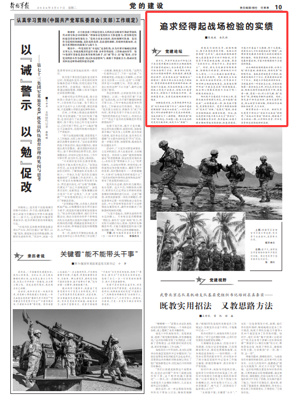 前不久,中共中央办公厅印发《关于在全党开展树立和践行正确政绩观学习教育的通知》,为全体党员干部实干担当指明了方向。联系部队实际,我们必须敲响警钟:在抓建设、谋发展的过程中,是否存在追求“短期效应”的情况?有的干部上任之初急于树标杆,将资源投向看得见的硬件设施,却忽视了打基础、利长远的夯基工程;有的抓工作急于出亮点,训练只盯着考核名次,却弱化了实战能力淬炼。这些现象背后,本质是政绩观的错位与偏差。