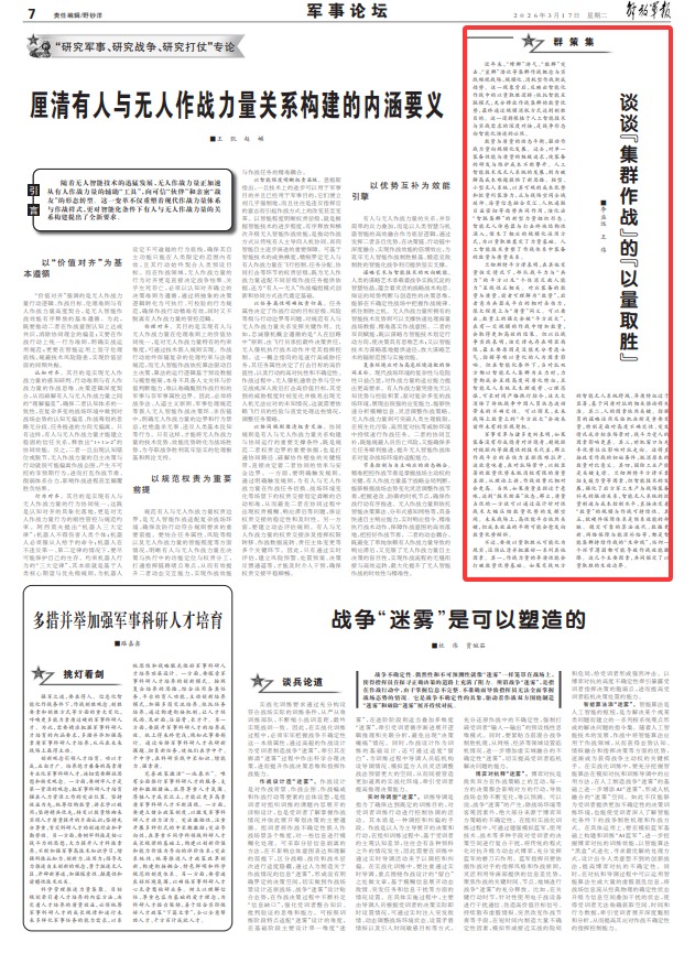近年来,“蜂群”游弋、“狼群”突击、“鲨群”潜伏等集群作战概念与实践频现战场,规模化、消耗型作战渐成趋势。这一现象背后,反映出智能化作战中的以量取胜逻辑:依托智能互联模式,充分释放作战集群的数量优势,最终通过规模消耗方式达到制胜目的。这一逻辑根植于人工智能技术与实战需求的深度对接,是战争形态向智能化演进的必然。