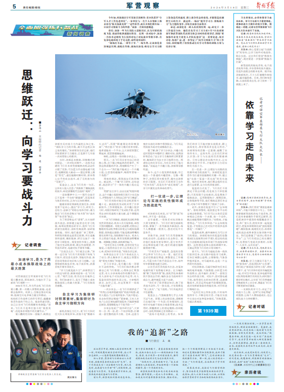 习主席指出,必须依靠学习走向未来。学习力与战斗力紧密相连,是推动战斗力提升的强大引擎。围绕这一话题,记者与空军某部某飞行大队大队长进行了交流。