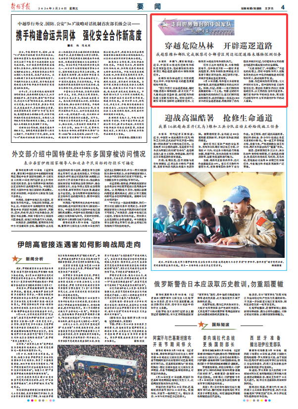 “太感谢你们了,中国朋友!”不远处的高塔上,目睹中国维和军人在险象环生的丛林中稳步向前推进的印尼维和军人,激动地挥手致意。